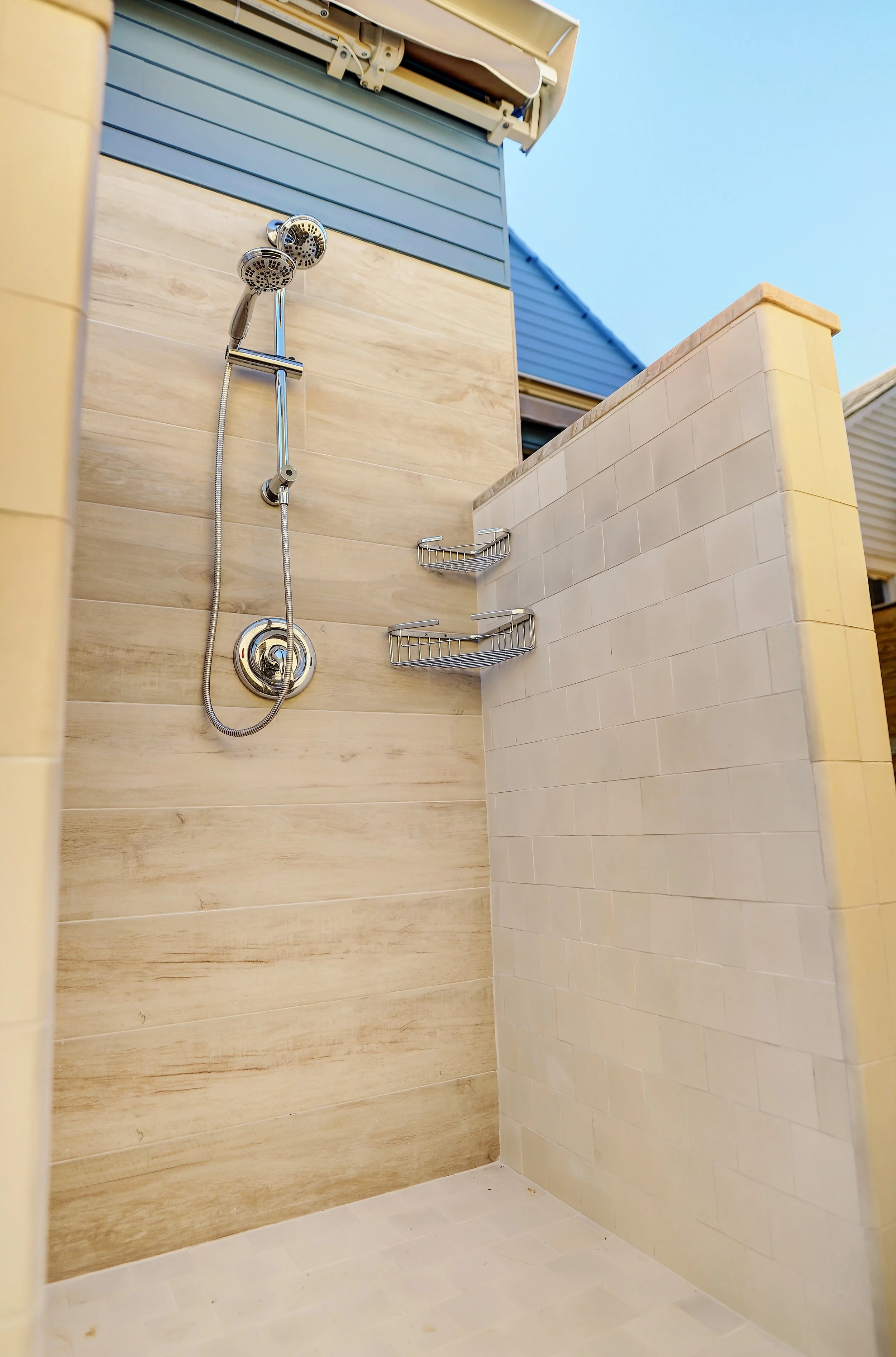 Scope of work: outdoor kitchen, outdoor shower, brick patio, horizontal fencing and gates